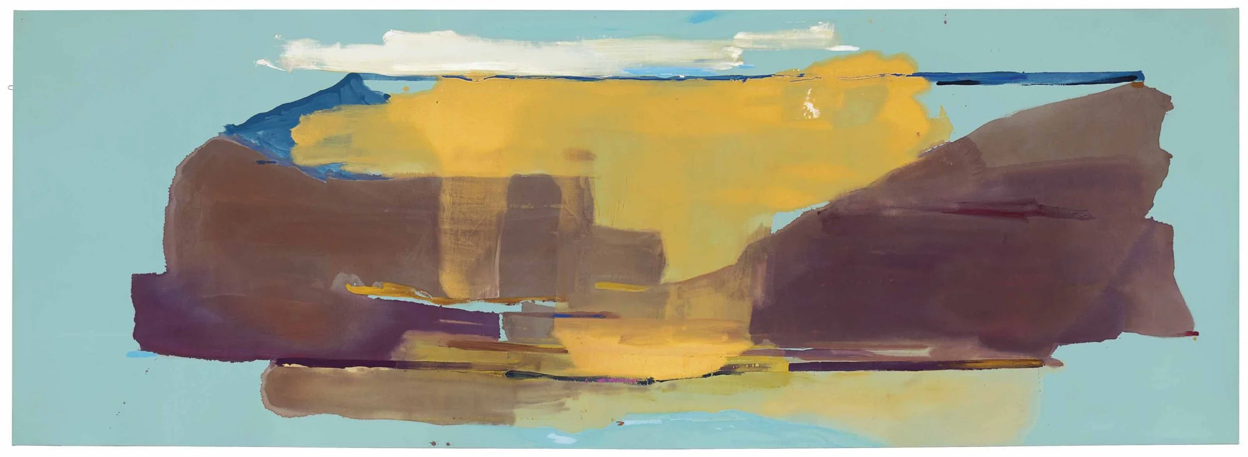Frankenthaler's signature technique involved pouring thinned paint onto unprimed canvas, allowing the colors to soak into the fabric and create luminous, atmospheric effects. This "soak-stain" technique, which she developed in the early 1950s, liberated color from its traditional role as a mere descriptor of form and elevated it to become the primary subject of her work. Her canvases, often large in scale, became immersive fields of color, inviting viewers to experience the emotional and sensory power of pure abstraction. Titles like Mountains and Sea and Canyon often hinted at the natural world, though her work remained fundamentally abstract, focusing on the interplay of color and form.